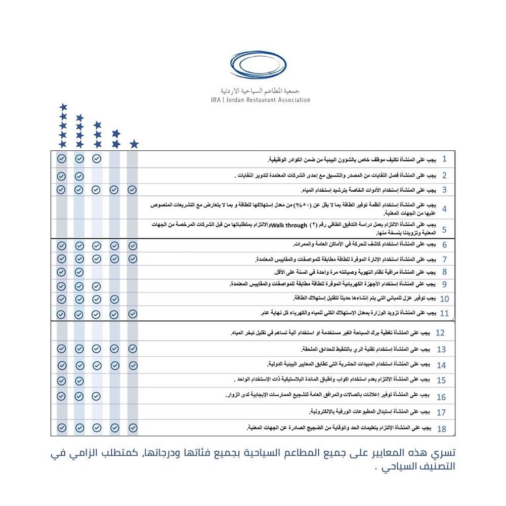 The Jordan Restaurant Association (JRA) today issued a critical call to its member restaurants regarding the immediate implementation of updated environmental standards.